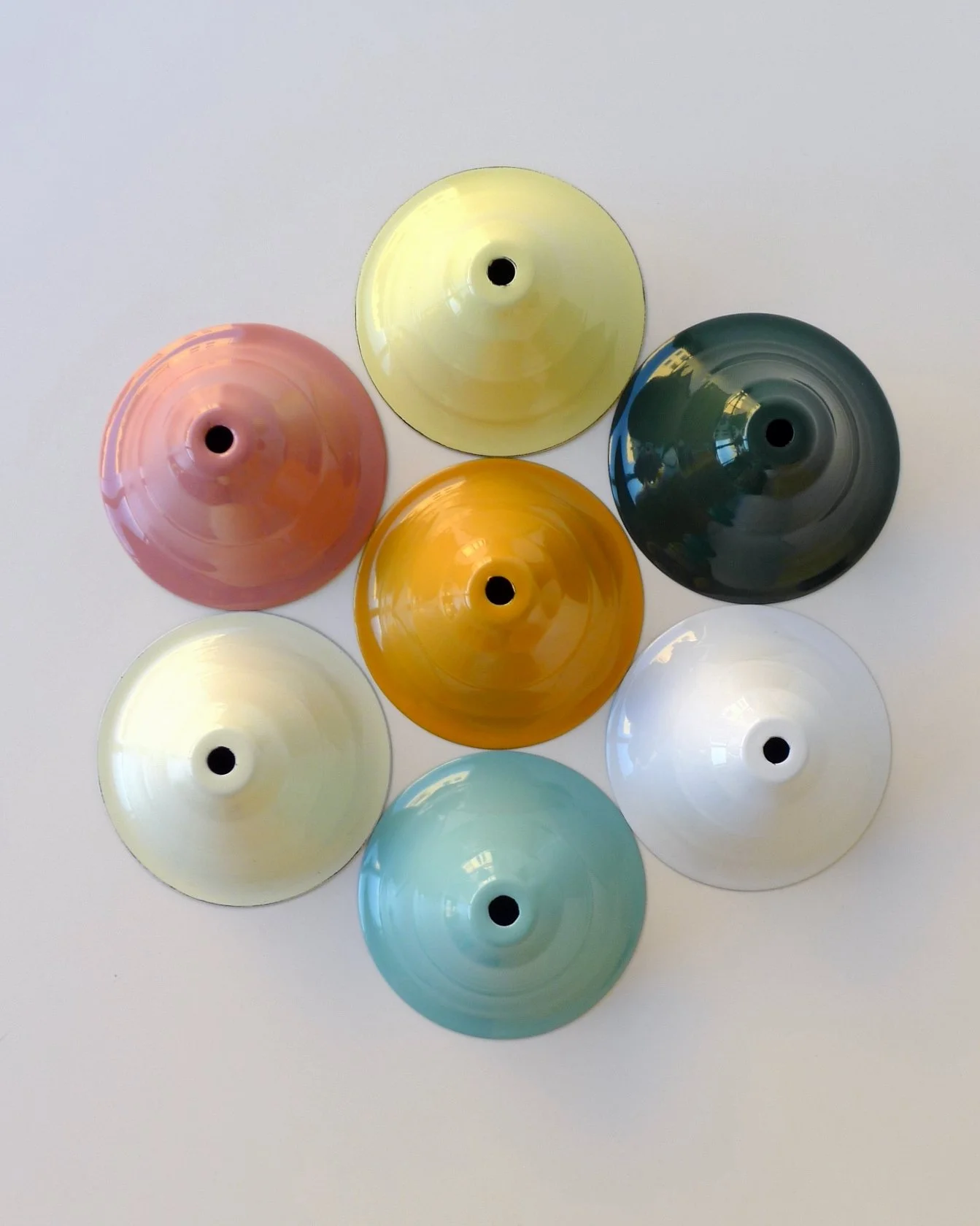 RAL 1004 Golden YellowIndustrial in vanilla with a black brim and black cordCeiling rose in vanilla with black cord Industrial in aqua green with vanilla brim and speckles, and a round aqua green cordIndustrial in vanilla with an aqua green brim and a brown cordIndustrial in vanilla with a white brim and white cordIndustrial in aqua green with vanilla brim and specklesIndustrial in vanilla with a black brim and black cord