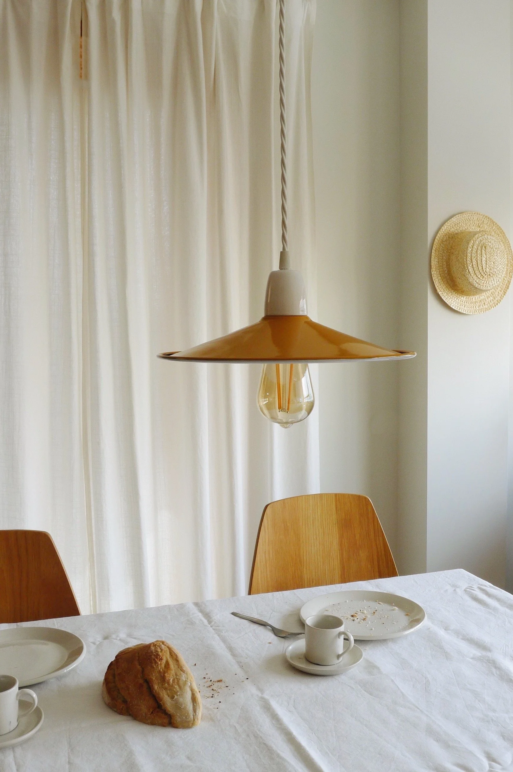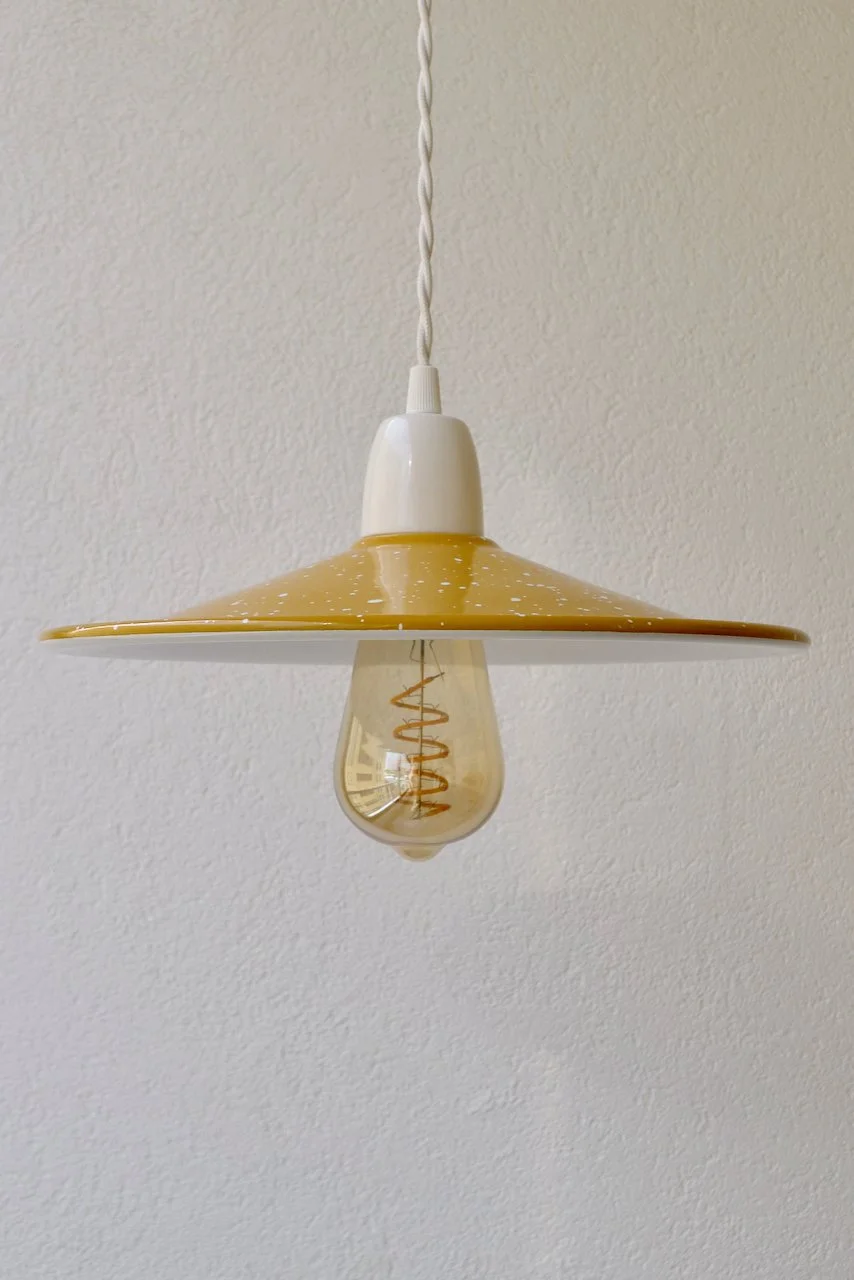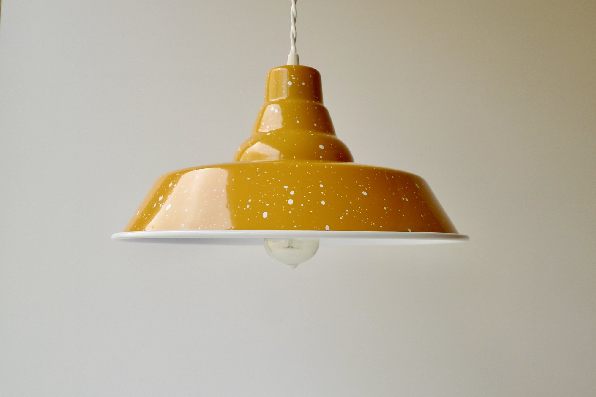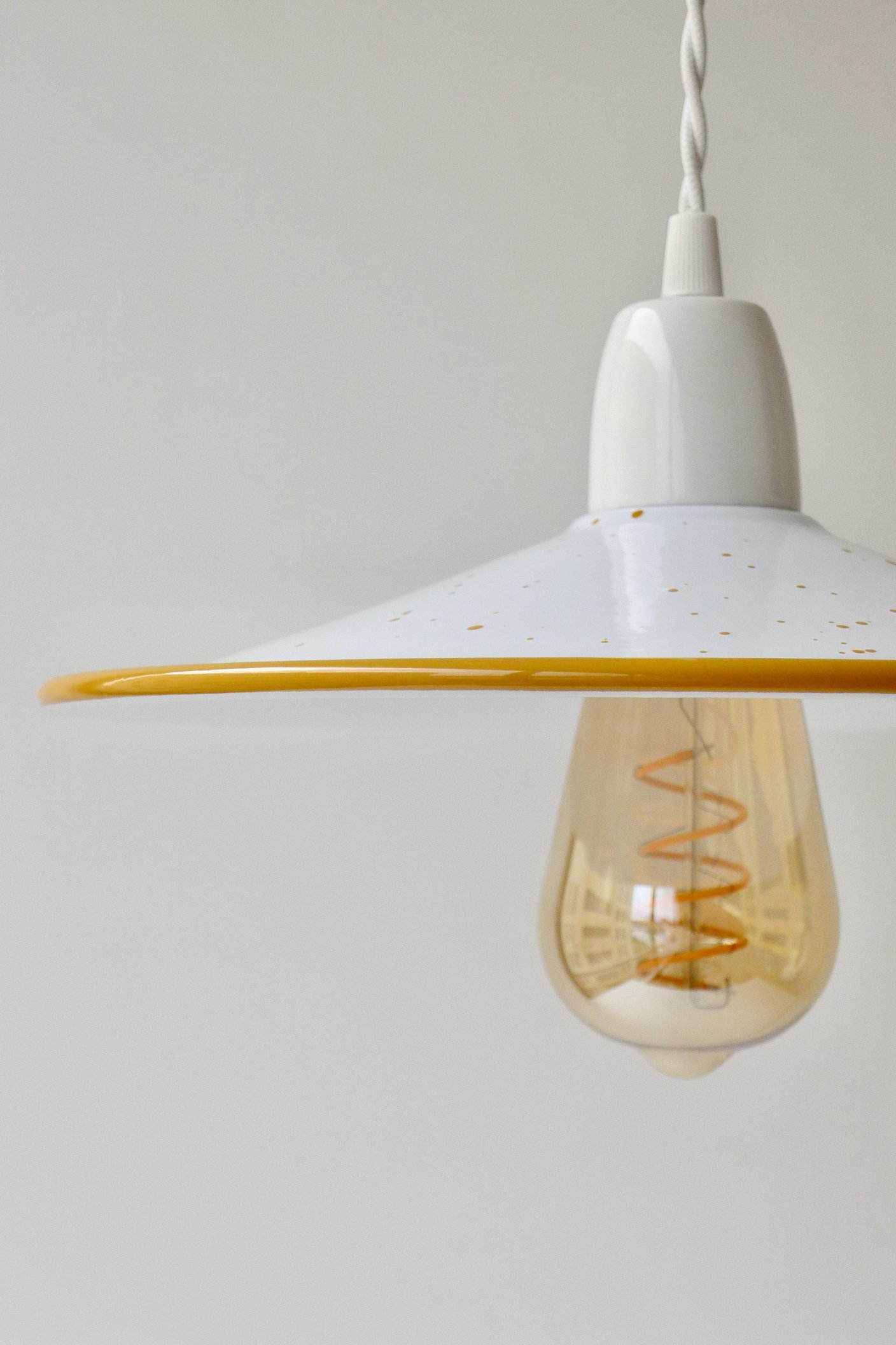RAL 1006 Maize Yellowmini in ochre with moss green specklesprato in white with ochre brim and specklesindustrial in ochre with white brim and white cord industrial in ochre with petrol blue brim and speckles, and a petrol round blue cordceiling rose in ochre with a white strain relief prato in ochre with ochre brimindustrial in ochre with white brim and speckles prato in ochre with ochre brim and white speckles