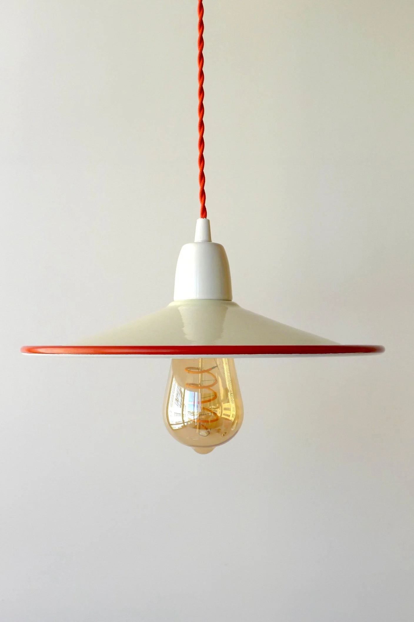 Prato in pistachio with red brim, white lamp cap and a red cord