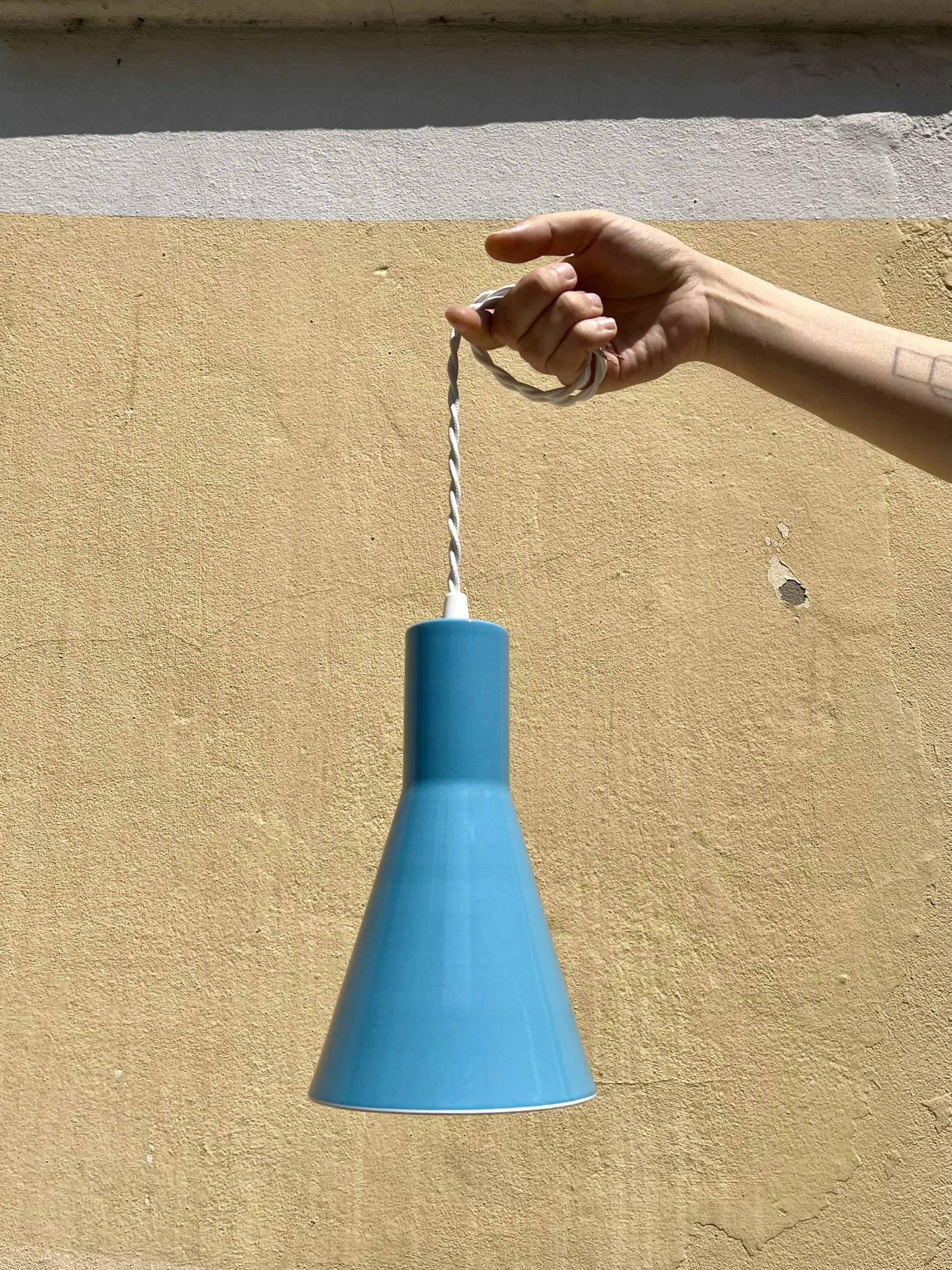 The enamel lamp is produced according to the European norms for enamel coating: lead and cadmium-free. Each lamp is handmade in a small workshop in the north of Portugal, where each piece is made to order. The lamp’s steel sheet mold is also produced locally with the best quality and free of toxic components like carbon.