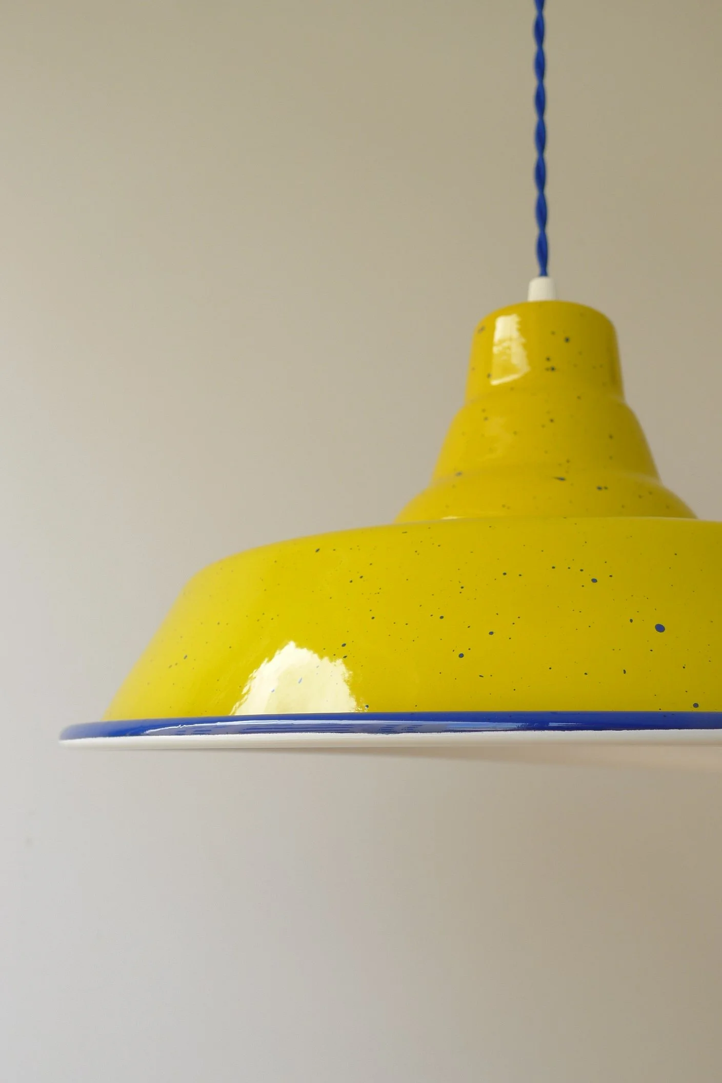 Industrial in yellow with white brim and a white cordCeiling rose in vanilla with black cord Industrial in yellow with royal blue brim and speckles, and a royal blue cordIndustrial in yellow with white brim and a white cordIndustrial in yellow with black brim and a black cordIndustrial in aqua green with yellow brim and specklesIndustrial in yellow with white brim and a white cord